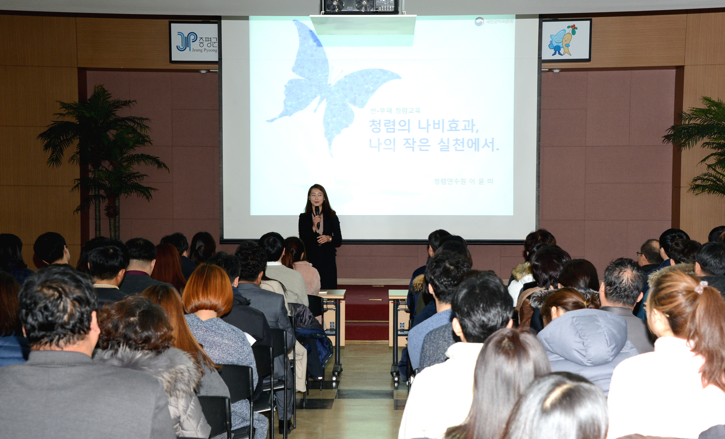 증평군이 청탁금지법 시행 1년을 맞아 ‘청렴도시 증평’의 명성을 이어 가고자 24일 대회의실에서 전 직원을 대상으로 2017년 하반기 공직자 청렴교육을 실시했다.(보도잘실 참조)