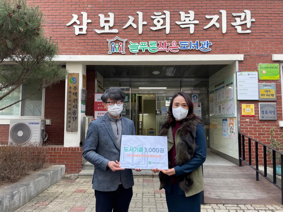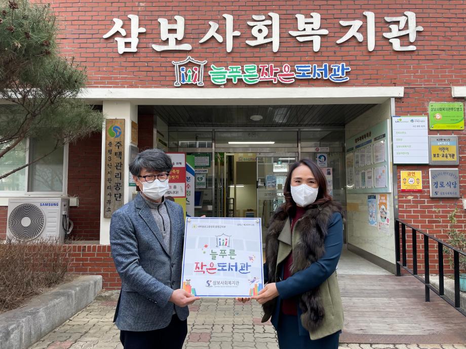 새마을문고중앙회 증평군지부(회장 박영미)는 10일 증평삼보사회복지관 내에 위치한 늘푸른 작은 도서관을 찾아 현판 및 도서 1,000여권을 전달했다.