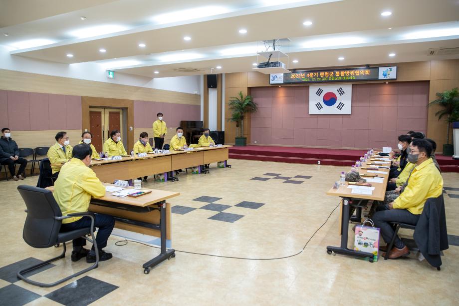 증평군은 지역 통합방위를 점검하고 유관기관·단체의 협조체계를 공고히 하기 위해 22일 군청 대회의 실에서 4분기 통합방위협의회를 개최했다.