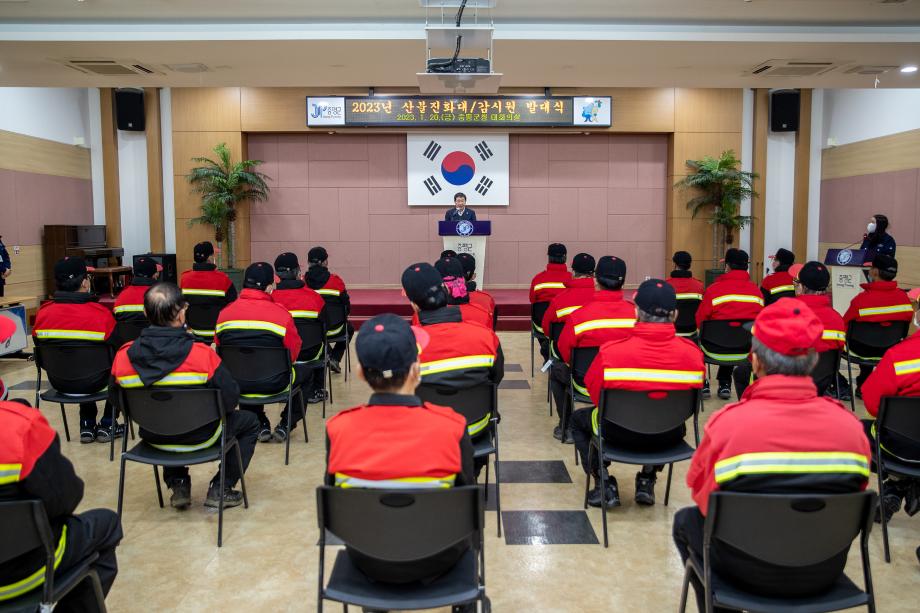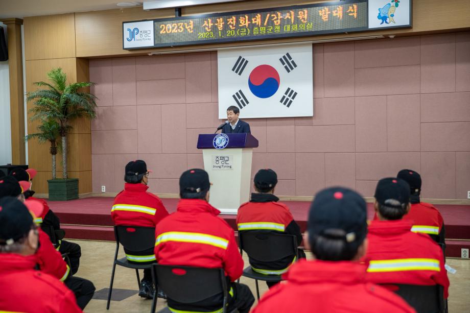 증평군은 20일 증평군청 2층 대회의실에서 2023년 봄철 산불진화 및 감시원 발대식을 열고 산불예방 대응체제에 돌입했다.