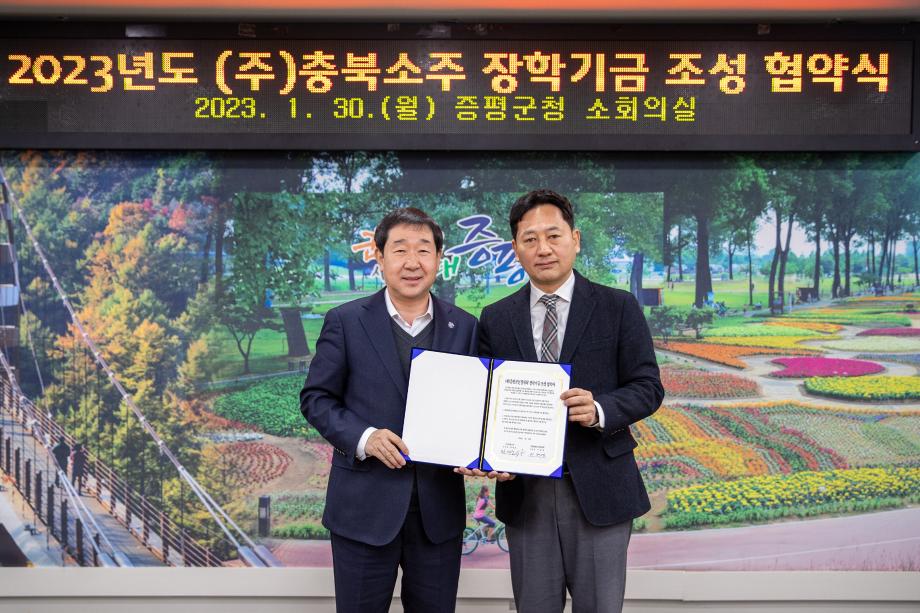 (주)충북소주, 증평군민장학회 장학기금 기탁 및 협약 체결