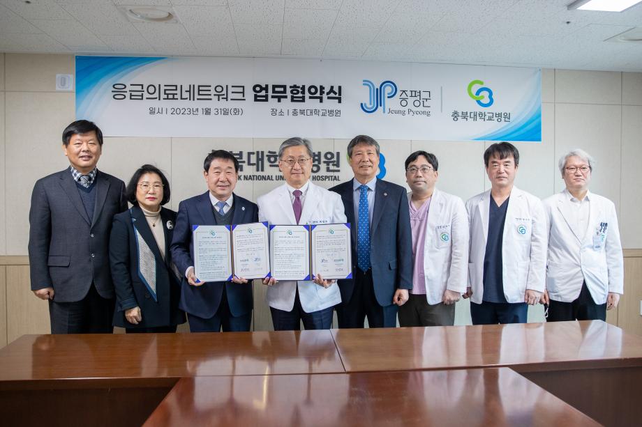 증평군(군수 이재영)은 지난 31일 지역 응급의료체계 구축과 긴밀한 협력체계 강화를 위해 충북대학교병원(병원장 최영석)과 업무협약을 체결했다고 밝혔다.