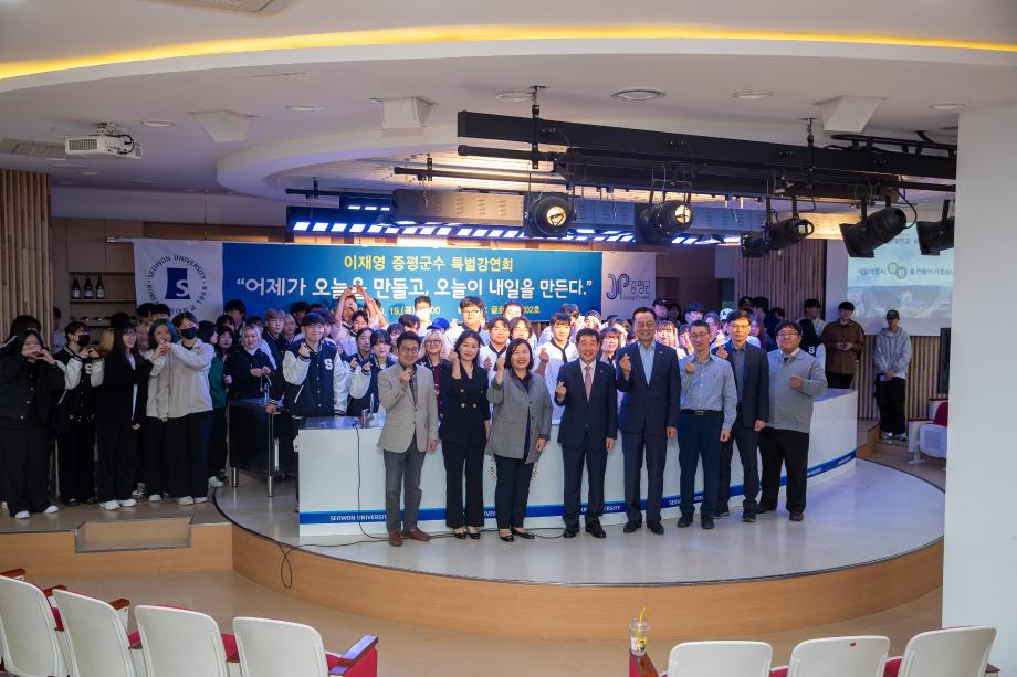 이재영 증평군수는 지난 19일 서원대학교에서 “어제가 오늘을 만들고, 오늘이 내일을 만든다”라는 주제로 특강을 진행했다.