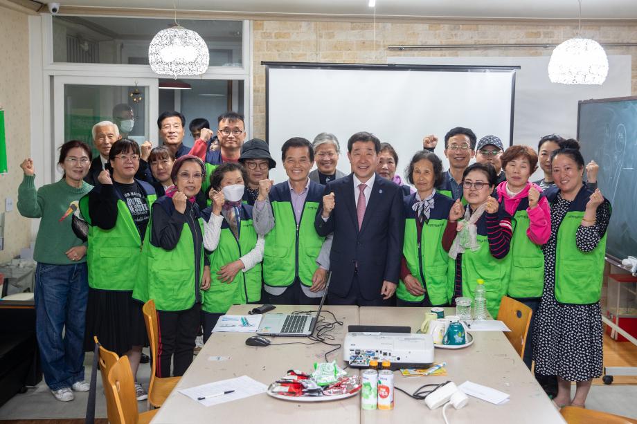 이재영 군수가 지난 26일 자원순환시민센터를 방문해 탄소중립과 관련한 주제로 주민들에게 특강을 펼쳤다.