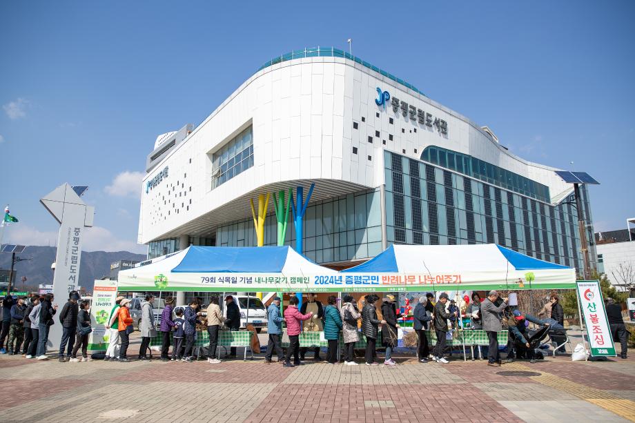 충북 증평군이 21일 증평군립도서관 일원에서 제79회 식목일을 기념해 전개한 ‘내 나무 갖기 캠페인’이 성황리에 마무리됐다고 밝혔다.