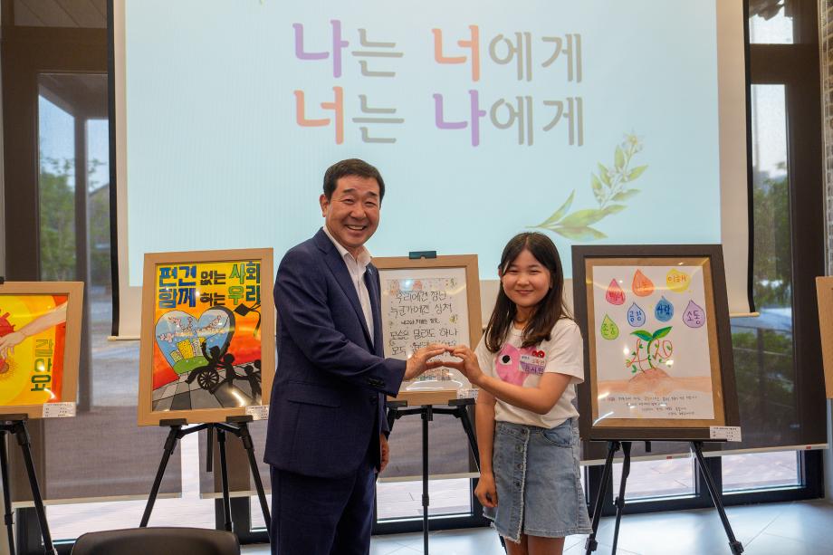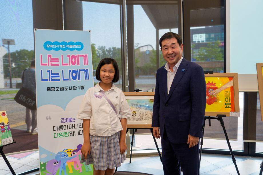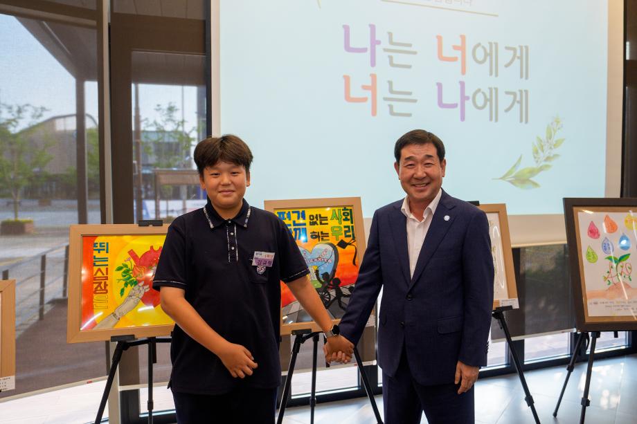 이재영 증평군수, 장애인식개선 작품공모전 수상자와 작품 속 의미 나눠