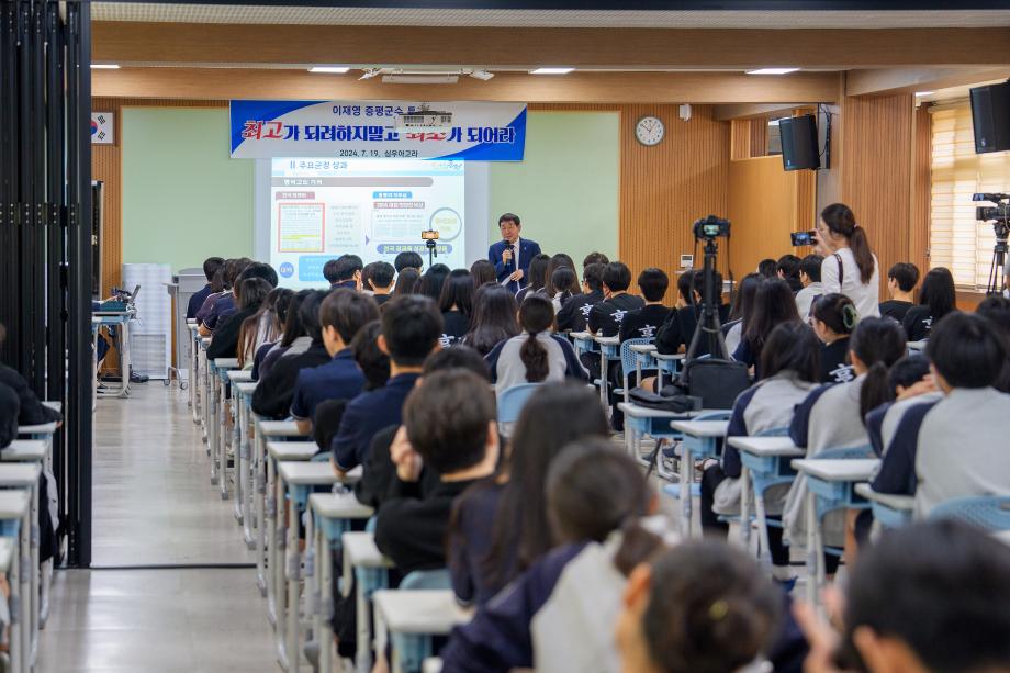 이재영 증평군수는 19일 형석고등학교를 방문해 ‘최고가 되려 하지 말고, 최초가 되어라’를 주제로 특강을 진행했다.