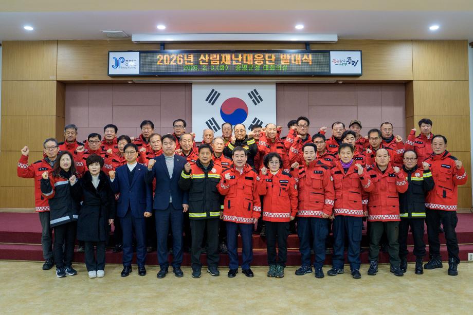 충북 증평군이 3일 군청 대회의실에서 ‘2026년 산림재난대응단 발대식’을 개최하고 산림재난 예방과 신속 대응을 위한 결의를 다졌다.