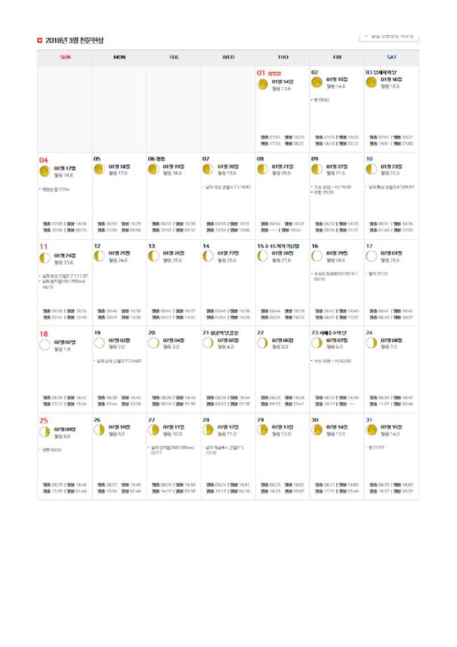 2018년 3월 별자리와 천문현상입니다.
