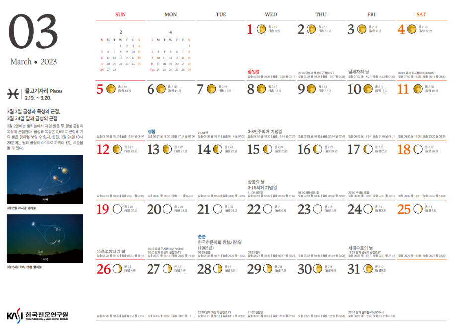 안녕하세요 2023년 3월 천체관측대상과 천체현상입니다.