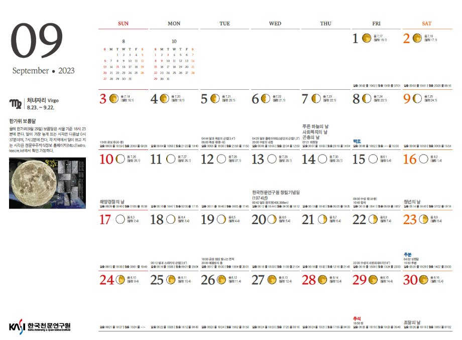 천체현상은 한국천문연구원에서 제공하였습니다.
