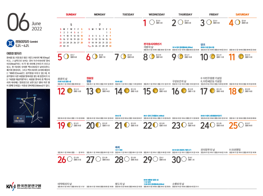 2022년 6월 천체관측대상과 천체현상입니다.