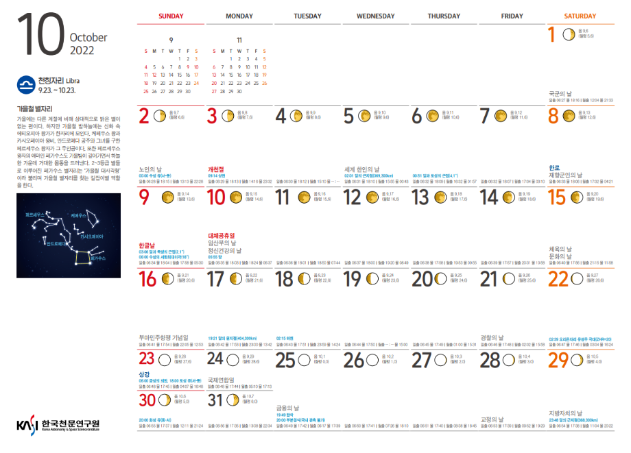 2022년 10월 천체관측대상과 천체현상입니다.