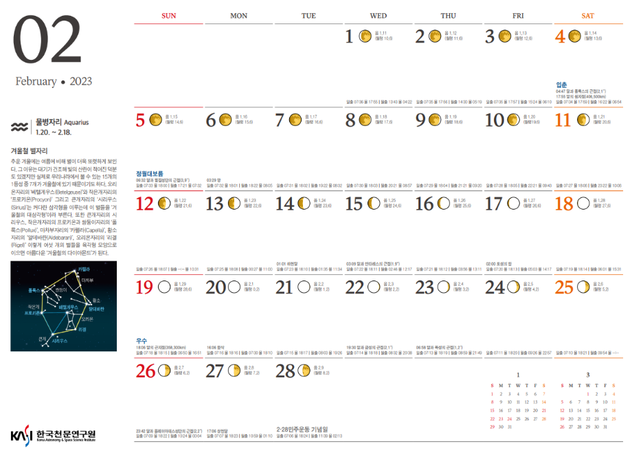2월 천체현상은 한국천문연구원에서 제공한 자료를 이용하였습니다.